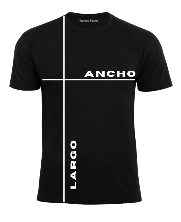 Largo: medí desde el punto más alto del hombro (junto al cuello) hasta el final inferior de la remera, en línea recta.